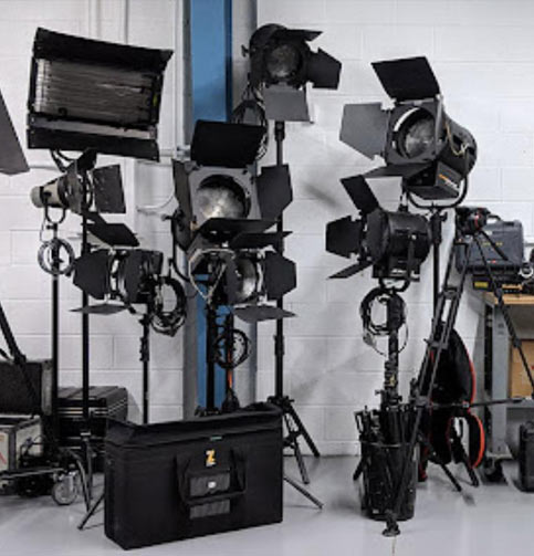 • Lighting Equipment: We supply comprehensive lighting solutions including LED panels, softboxes, and professional lighting rigs that ensure optimal illumination for various shooting conditions and creative requirements at any production scale.